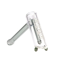 The Grav Colored Hammer Bubbler measures 4” inches tall by 7” inches in length. The rounded mouthpiece paired with the worked glass marble feet on the base allow the Grav Hammer Bubbler to proudly stand upright between uses. The body is made from clear borosilicate glass while the mouthpiece, downstem, and marble feet come in your choice of matching colored glass accents. Experience why bigger is always better with the Grav Hammer Style Bubbler today!