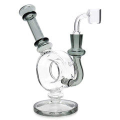 Watch your smoke go round and round in this mesmerizing Donut Dab Rig from Pulsar! Standing 6.25” inches tall, this thick scientific glass oil rig provides sizable and tasty dabs from your favorite wax concentrates. The fixed downstem filters your vapor through water inside the base, while the circular air path gives each dab plenty of time to cool down without sacrificing any flavors. Pulsar’s Donut Dab Rig is equipped with a reinforced 14mm female joint and includes a 14mm quartz banger bucket. The angled straight neck makes this piece easy to hit from any position, while the flared base keeps it stable between uses. You’ll be happier than Homer Simpson in a donut shop with the Pulsar Donut Dab Rig!